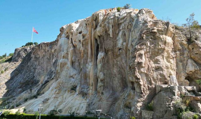 Depremle açığa çıkan termal su doğal traverten oluşturdu