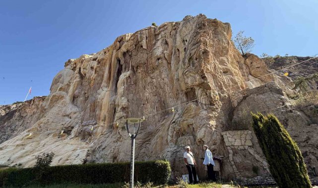 Reşadiye ilçesinde 1939 Erzincan depreminin ardından yüzeye çıkan termal su, 86 yıllık süreçte oluşturduğu doğal traverten ziyaretçilerin ilgisini çekiyor. İlçe merkezinde yamaçtan süzülen sıcak suların kireç taşı ve mineral birikintileriyle şekillendirdiği sarı, beyaz ve kahverengi tonlardaki tabakalar, güneş ışığı altında büyüleyici bir renk cümbüşü sergiliyor. Çevre düzenlemesi yapılan alanda hem fotoğraf tutkunları hem doğaseverler yoğun ilgi gösteriyor. Jeolojik açıdan korunması gereken bu eşsiz yapı, bölgenin turizm potansiyelini artırırken, bölge hem doğal peyzaj hem de sağlık turizmi açısından büyük değer taşıyor. Kayalıkta oluşan doğal yapılar gece aydınlatmasıyla da misafirlerine eşsiz bir şölen sunuyor.