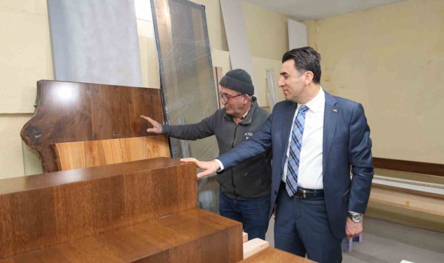 Bilecik Valisi Şefik Aygöl, beraberinde Bilecik Aile ve Sosyal Hizmetler İl Müdürü İlkay Türkoğlu ile birlikte, 6 Şubat Depremleri sonrası Hatay'dan Bilecik'e gelen depremzede Adil Kenziman'ı çalıştığı mobilya atölyesinde ziyaret etti.