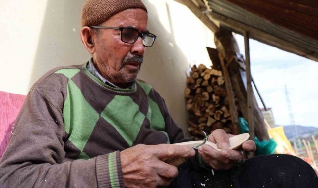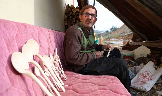 Kahramanmaraş'ın Onikişubat ilçesi Avcılar Mahallesi sakinlerinden 75 yaşındaki Ahmet Avcı, 15 yıldır şimşir ağacından tahta kaşık yapıyor. Depremde evini kaybeden yaşlı vatandaş yeni köy konutunda yaşamını sürdürüyor. İşini severek yaptığını ifade eden yaşlı vatandaş kaşıklarını Türkiye'nin dört bir yanına gönderiyor.