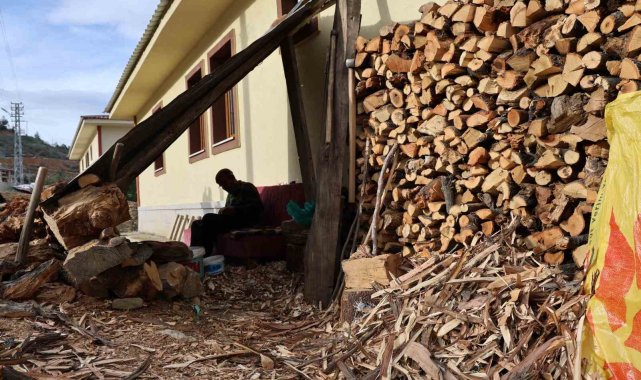 Depremzede Ahmet dede yeni evinde tahta kaşık üretimine devam ediyor