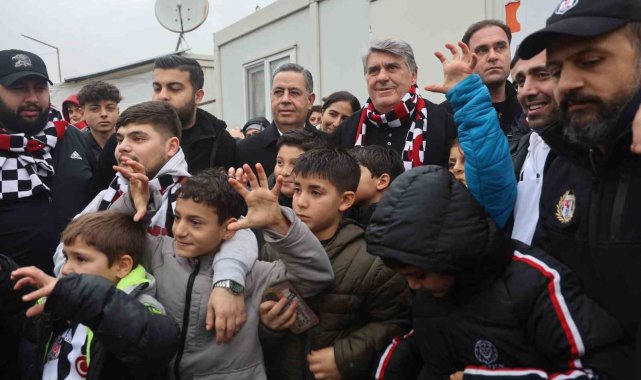 Hatay'ın Defne ilçesinde afetzede vatandaşlarla bir araya gelen Beşiktaş Kulübü Başkanı Serdal Adalı, çocuklara hediye dağıttı.