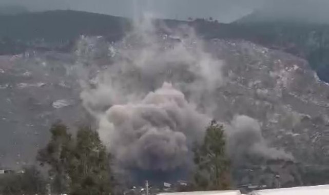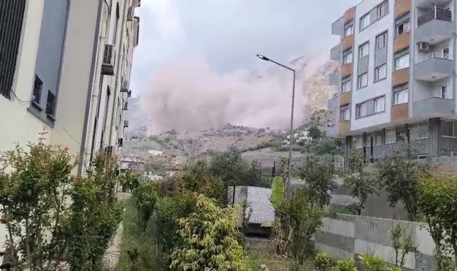 Hatay'ın İskenderun ilçesinde kent merkezine yakın bir noktada bulunan taş ocağında gerçekleştirilen patlamayla toz bulutu hakim oldu. Patlamanın etkisiyle depremzede vatandaşlar tedirgin olurken, mahallenin toz bulutu altında kaldığı anlar kameraya yansıdı.