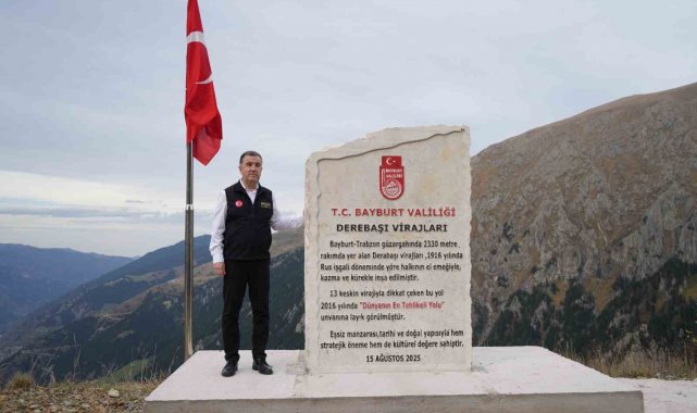 Bayburt ile Trabzon sınırında yer alan ve 'Dünyanın En Tehlikeli Yolu' olarak bilinen Derebaşı Virajları'na, bölgenin simgesi olacak 'Derebaşı Virajları Künye Taşı' Bayburt Valiliği tarafından dikildi.