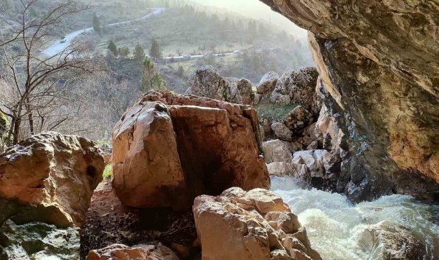 Konya'nın Derebucak ilçesinde yaz aylarında kuruyan Düden Şelalesi, kış mevsiminde etkili olan yağışların ardından yeniden akmaya başladı.