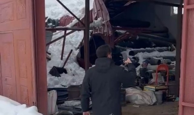 Hakkâri'nin Derecik ilçesine bağlı Gelişen köyünün Aralık mezrasında etkili olan yoğun kar yağışı nedeniyle bir ahırın çatısı çöktü.