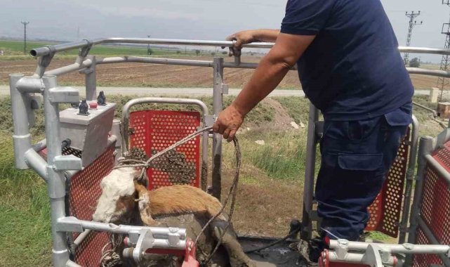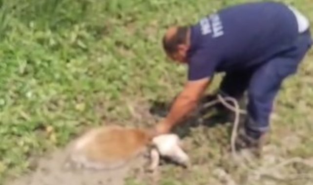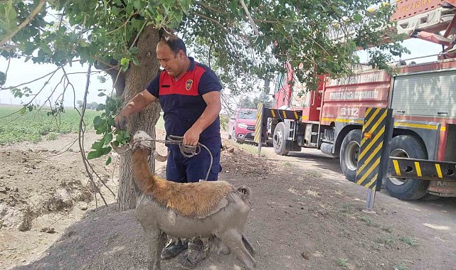 Hatay'da dereye düşerek çamur içerisinde mahsur kalan koyunu itfaiye ekipleri kurtardı.