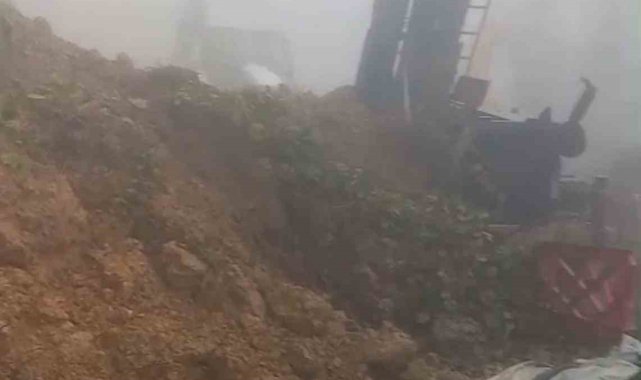 Dereli'de heyelan: Maden şirketinin sondaj makinesi toprak altında kaldı
