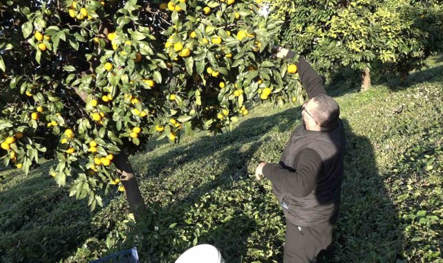 Rize'nin Derepazarı ilçesinde yetişen ve ismini yetiştiği ilçeden alan Derepazarı mandalinasında yılın ilk hasadı başladı.