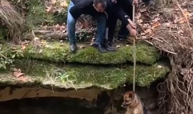 Dereye düşen köpek duyarlı vatandaş sayesinde kurtarıldı