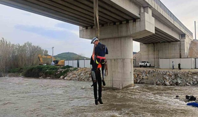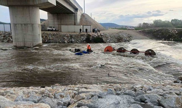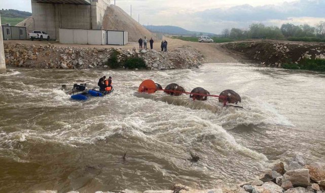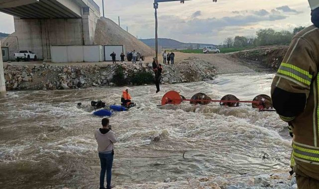 Bursa'nın Yenişehir ilçesinde Kocasu Deresi'nden traktörle karşıya geçmek isteyen 10 işçinin bulunduğu traktör, suyun ortasında devrildi. Akıntının etkisiyle dengesini kaybeden traktördeki işçiler dere içinde mahsur kaldı.