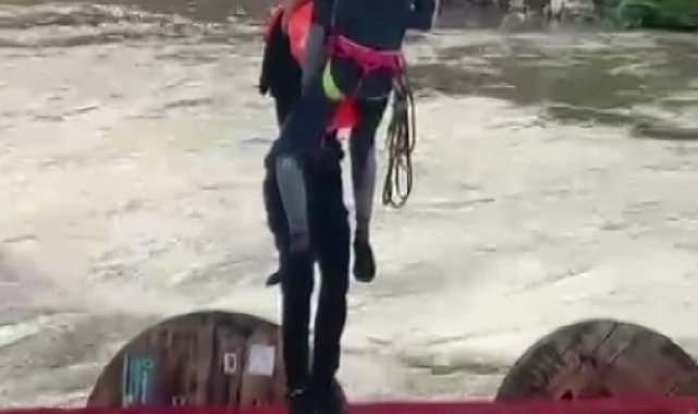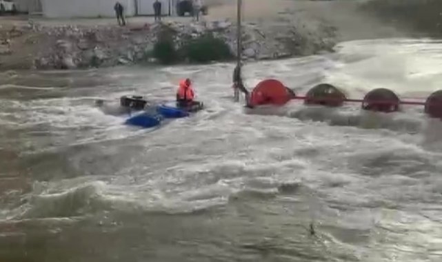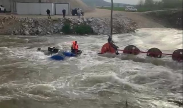 Dereyi traktörle geçmek isterken faciadan dönüldü: 10 işçi vinçle kurtarıldı