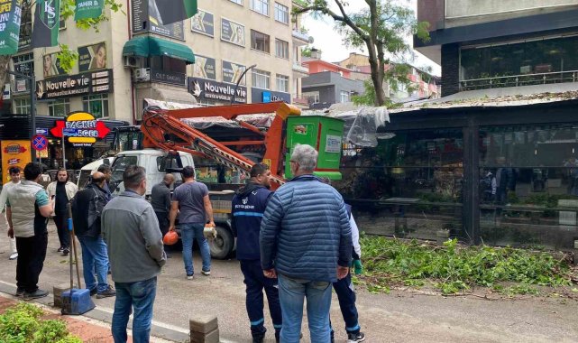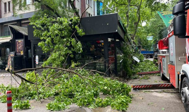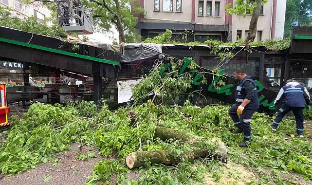 Kocaeli'nin İzmit ilçesinde öğle saatlerinde etkili olan şiddetli rüzgar ve sağanak yağış, günlük yaşamı olumsuz etkiledi. İzmit'in Ömerağa Mahallesi Yürüyüş Yolu üzerinde, fırtına nedeniyle devrilen asırlık bir çınar ağacı bir kafeteryanın üzerine düştü. Olayda iki kişi yaralanırken, çevrede büyük panik yaşandı.