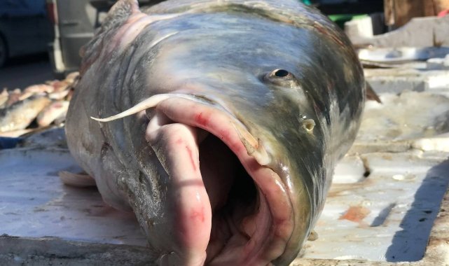 Esnaf Sinan Atasever, "Bu balık Karasu nehrinde yakalandı. Kesip satıyoruz alıcısı da var. Daha büyükleri de var bu balıkların. Ama tutulma şansları yok." ifadelerini kullandı.