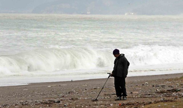 Dev dalgalar sahili dövdü: Martılar balık, define avcıları kıymetli eşya aradı