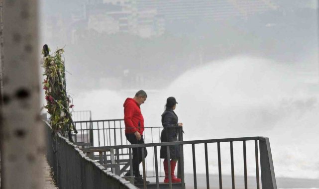 Meteoroloji 4. Bölge Müdürlüğü tarafından dün akşam ve bugün için 'sarı kod' uyarısı yapılan turizm kenti Antalya'da, gece saatlerinde başlayan yağış ve şiddetli rüzgar hayatı olumsuz etkiledi. Sabah saatlerinde yağış etkisinin yitirirken, Konyaaltı Sahili'nde boyu yaklaşık 4 metreye kadar ulaşan dev dalgalar oluştu. Kıyı şeridine gelen vatandaşlar da, dalgaların dövdüğü sahili cep telefonlarıyla görüntüledi.