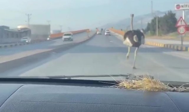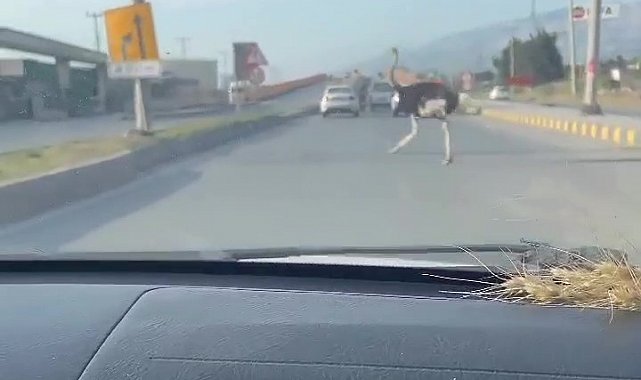 İskenderun ilçesinde çiftlikten kaçan deve kuşu, Profesör Muammer Aksoy Caddesi'nde karayoluna çıkarak trafiğe girdi. Trafikte deve kuşunu bir anda karşısında gören sürücü zor anlar yaşadı. Deve kuşunun trafikte koştuğu anları cep telefonuyla kayıt altına alan vatandaşın 'abo' diyerek şaşkınlık yaşadığı anlarsa gülümsetti.