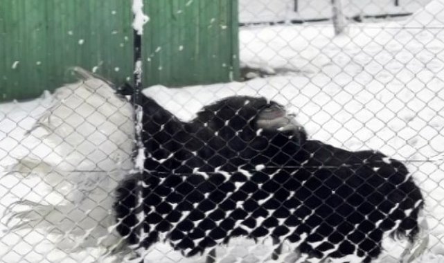 Deve kuşunun kar sevinci kamerada