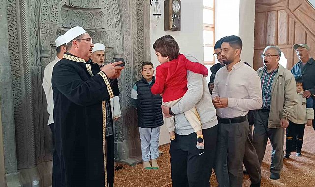 Kayseri'nin Develi ilçesinde Ramazan Bayramı'nda vatandaşlar camilere akın ederken, cemaat Sakal-ı Şerif'i ziyaret imkanı buldu.