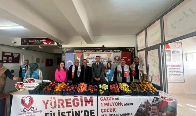 Develi İnsani Yardım Derneği ve Sindelhöyük Fatih İmam Hatip Ortaokulu tarafından Filistinli çocuklara yardım etmek amacıyla iyilik manavı programı düzenlendi.