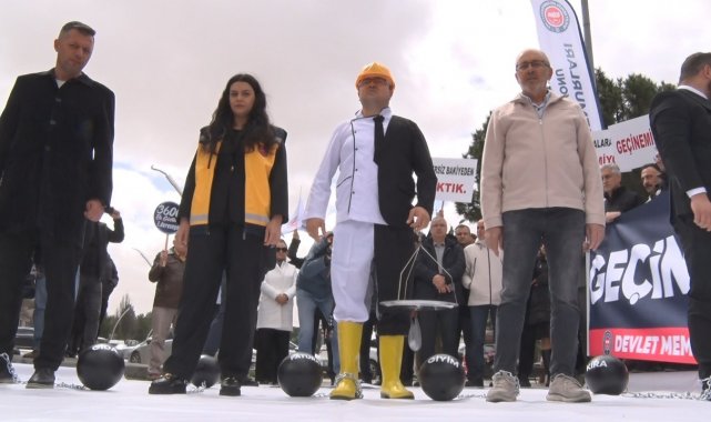 Kamu çalışanları, ekonomik şartlara dikkat çekmek amacıyla Hazine ve Maliye Bakanlığı önünde temsili bir eylem gerçekleştirdi. Eylemde üniformalı memurlar, bir ayı temsil eden beyaz zemin üzerinde yürüyerek ayın sonuna ulaşmaya çalıştı. Memurların üzerinde kira, kredi ve borç yazılı ayaklarına bağlı gülleler nedeniyle ilerleyemedikleri görüldü. Ardından basın açıklaması yapan Devlet Memurları Konfederasyonu Genel Başkanı Osman Kaya, İsrail'in saldırılarını sert sözlerle eleştirerek, yaşananların yalnızca belirli bir coğrafyayı değil, tüm insanlık onurunu hedef aldığını ifade etti. Masum sivillerin hedef alınmasının kabul edilemez olduğunu vurgulayan Kaya, işlenen suçların ve dökülen her damla kanın er ya da geç tarih önünde hesabının sorulacağını dile getirdi.