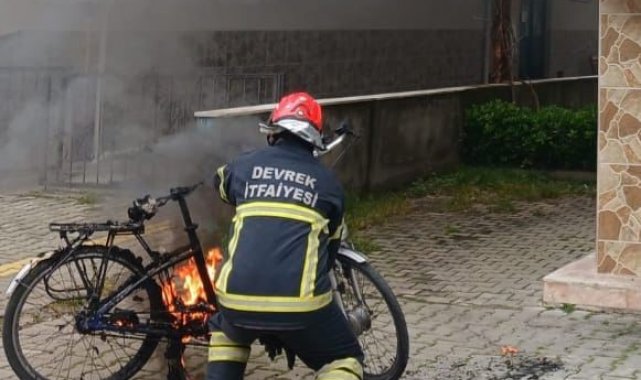 Zonguldak'ın Devrek ilçesi Karşıyaka Mahallesi Sahil Sokak'ta meydana gelen olayda, bir vatandaşa ait elektrikli bisiklet park halindeyken alev aldı. Evin altındaki garajda çıkan yangını fark eden vatandaşların ihbarı üzerine olay yerine Devrek Belediyesi itfaiye ekipleri sevk edildi. Kısa sürede bölgeye ulaşan ekiplerin müdahalesiyle alevler eve sıçramadan kontrol altına alınarak söndürüldü. Elektrik aksamından çıktığı tahmin edilen yangında bisiklet kullanılamaz hale gelirken, itfaiye ekipleri olayla ilgili tutanak tuttu.