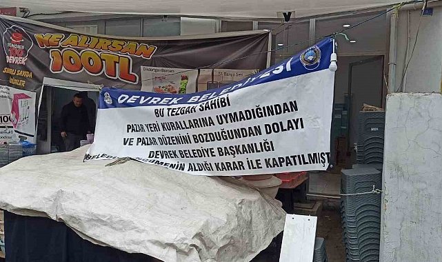 Zonguldak'ın Devrek İlçesinde Devrek Belediye Zabıta Müdürlüğü ekipleri tarafından Pazar kurallarına uymadığı ve düzeni bozduğu gerekçesiyle Belediye Encümen kararı ile geçici olarak faaliyetine son verildi.