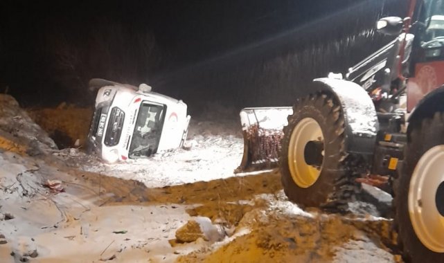 Tokat'ta taburcu olan hastayı bıraktıktan sonra dönüş yolunda kontrolden çıkarak devrilen ambulansın sürücüsü yaralandı.