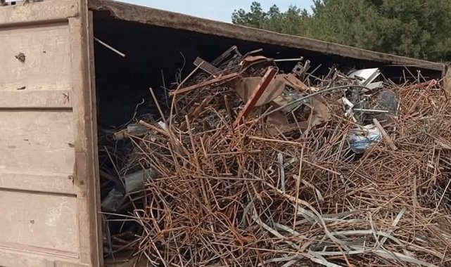 Devrilen demir yüklü kamyonun sürücüsü yaralandı