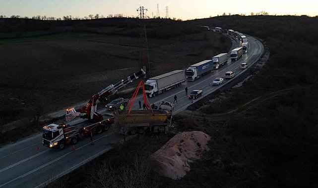 Kazada yan yatan kamyonu kurtarma çalışmaları sırasında Bulgaristan'a açılan Hamzabeyli Sınır Kapısı yönüne giden ihracat tırları ile Edirne istikametine seyreden araçlar yolda uzun kuyruklar oluşturdu. Hafriyat kamyonunun vinç yardımıyla olay yerinden kaldırılmasının ardından uluslararası yol yeniden trafiğe açılırken, jandarma ve polis ekipleri kazayla ilgili inceleme başlattı.