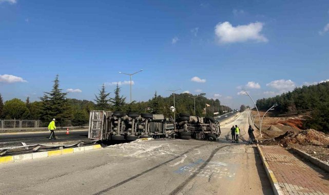 Edinilen bilgilere göre, İzmir-Uşak karayolu üzerinde merkez istikametine doğru seyir halinde olan F.D.Ç. (30) idaresindeki 01 UAA 19 plakalı kömür yüklü tır Hacıkadem kavşağı yakınlarına geldiğinde direksiyon hakimeyetini kaybetmesi sonucu bariyerlere çarparak şarampole devrildi. Tırın ve dorsenin devrilmesi sonucu kömürler ise yola saçıldı.
