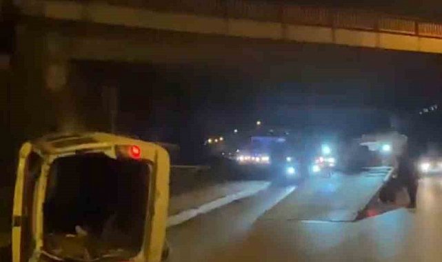 Devrilen minibüsün sürücüsü ağır yaralandı