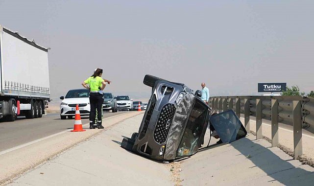 Afyonkarahisar'da kontrolden çıkarak refüje devrilen otomobilde 1 kişi öldü, 3 kişi de yaralandı.