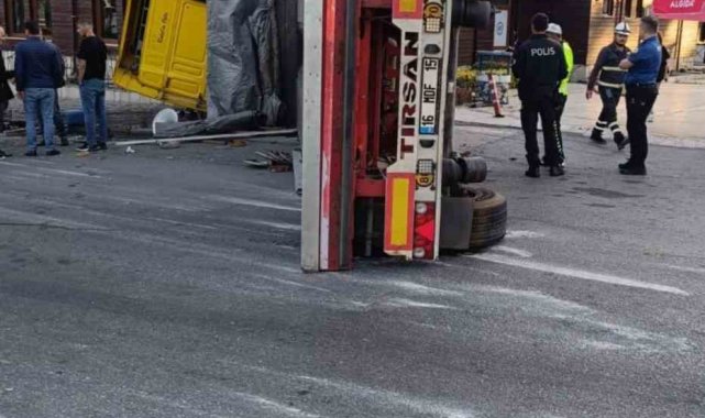Devrilen tır ortalığı savaş alanına çevirdi: 1 yaralı