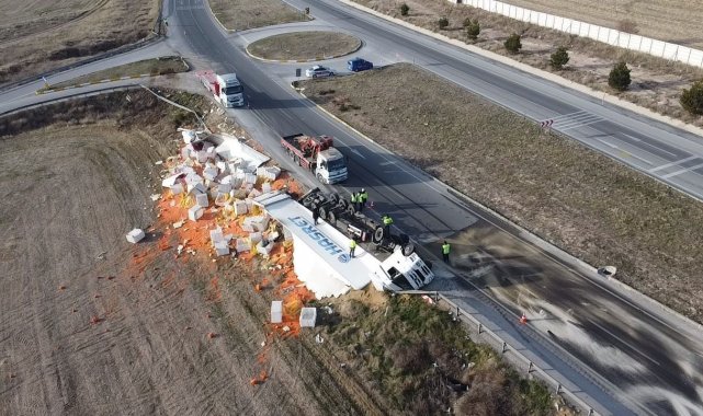Kaza, Emirdağ ilçesi çıkışında meydana geldi. Edinilen bilgilere göre, 33 AHD 808 plakalı havuç yüklü tır sürücüsünün henüz belirlenemeyen bir sebepten ötürü direksiyon hakimiyetini kaybetmesi sonrası kontrolden çıktı. Savrulan araç ardından şarampole devrildi. Kazada tırın dorsesinde taşıdığı yaklaşık 27 ton havuç ise çevreye saçılarak ziyan oldu. Kazada yaralanan sürücü ihbar üzerine olay yerine gelen ambulanslı hastaneye kaldırıldı. Kazanın ardından devrilen tırın olay yerinden kaldırılması için yoğun uğraş verildi.