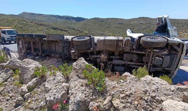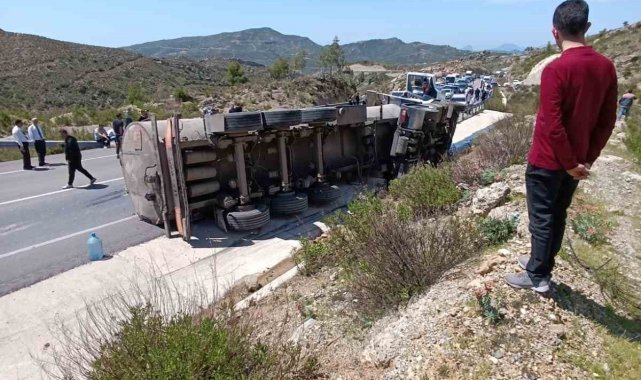 Konya-Antalya Karayolu Beydiğin Mahallesi'nde tırın devrilmesi sonucu meydana gelen kazada tırın tankerindeki zift yola saçıldı.