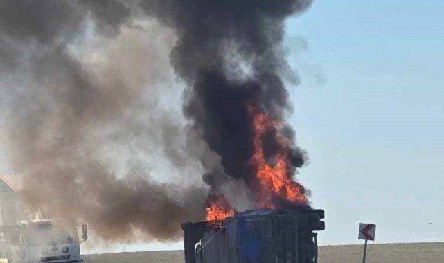 Şanlıurfa'da devrildikten sonra alev alarak yanan mısır yüklü tırın sürücüsü sinir krizi geçirdi.
