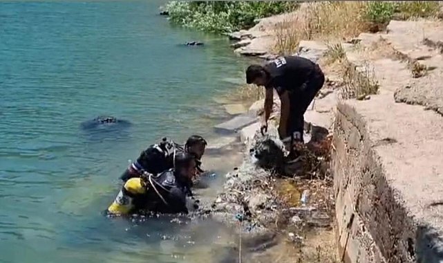 Dicle Baraj Gölü'nün altında temizlik çalışması yapıldı