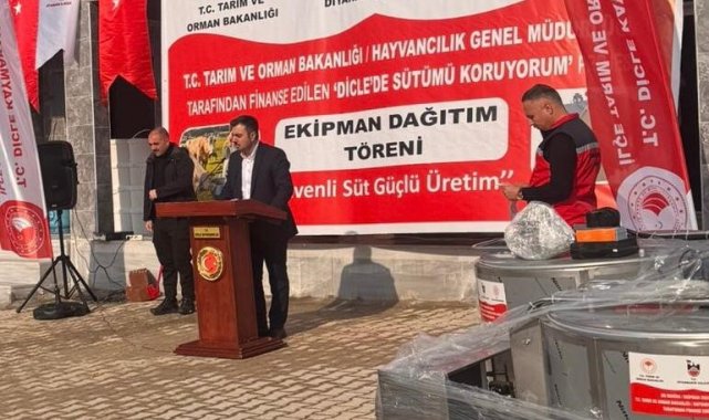 Dağıtım törenine Dicle Kaymakamı Mustafa Atış, Diyarbakır Tarım ve Orman İl Müdürü Adil Alan, birçok kurum amiri ve çok sayıda çiftçi katıldı. Çavlı Hayvancılık Kooperatifinin çalışmaları hakkında bilgi veren Dicle İlçe Tarım ve Orman Müdürü Deniz Yıldırım "2006 yılında 50 üye ve her üyeye 6 adet gebe düve toplam 300 adet hayvan temini ile kurulan Çavlı Hayvancılık Kooperatifinin kuruluşunda, uzun vadeli sübvansiyonlu kredi kullanıldı. 2025 yılı itibariyle kooperatif hayvan sayısı bin 100 adettir. Günlük ortalama 6 bin litre süt üretimi var. Tarım ve Orman Bakanlığı olarak 2021 yılında kooperatif üyelerine yüzde 75 hibeli olarak 15 adet süt sağım makinası dağıtımı yapılarak bugünlere gelindi. Kooperatif üyelerine Bakanlıkça düzenli olarak buzağı destek ödemesi yapılmaktadır. Bu bağlamda 2024 yılı için 437 bin lira buzağı destek ödemesi yapıldı. Ayrıca İlçe Tarım ve Orman Müdürlüğümüzce sağlık taramaları, aşılama ve kimliklendirme çalışmaları program kapsamında rutin olarak yapılmaktadır. Proje kapsamında alınan ekipmanların toplam bedeli 899 bin 500 liradır. Proje bütçesinin yüzde 75'i olan 674 bin 625 lira Tarım ve Orman Bakanlığı tarafından hibe olarak yüzde 25 olan 224 bin 875 lira ise çiftçi katkısı olarak karşılandı. Proje ile süt kalitesinin arttırılması ve kaliteli çiğ sütün pazarlanma sürecinde muhafaza süresinin uzatılması ile hayvansal üretimin sürdürülmesi hedeflenmektedir" dedi.