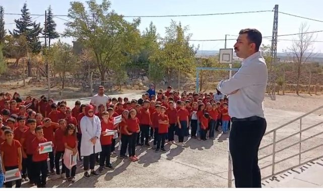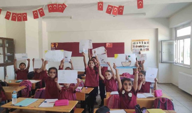 Diyarbakır'ın Dicle ilçesine bağlı kırsal Arı İmam Hatip İlk ve Ortaokulunda eğitim gören öğrenciler, Gazze'ye destek çalışması yaptı.