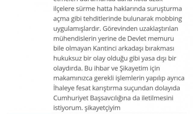 Memur, CİMER'e yazdığı şikayette şu ifadeler yer aldı: