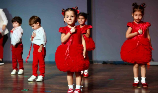 Cumhuriyet coşkusunun hakim olduğu salonda, minik öğrenciler tarafından büyük bir özenle hazırlanan dans gösterileri, şiir ve marşlar, izleyenlerden dakikalarca alkış aldı. Türk bayraklarıyla sahnede yer alan minikler, Cumhuriyet'in anlam ve değerlerini yansıtan performanslarıyla hem duygulandırdı hem gururlandırdı.
