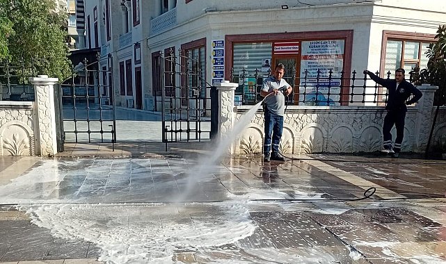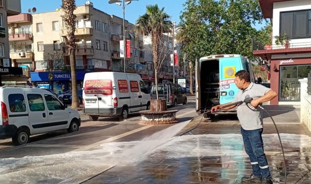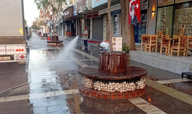 Didim Belediyesi, ilçe genelindeki bakım, onarım ve düzenleme çalışmalarına devam ediyor. Bu çerçevede sahaya inen belediye temizlik ekiplerinin son durağı Cumhuriyet Caddesi oldu. Sabahın erken saatlerinde bölgeye gelen ekipler, caddedeki sokakları köpükle yıkadı. Yapılan temizlik çalışmalarıyla birlikte sokaklar pırıl pırıl olurken, vatandaşlar da belediyeye teşekkür etti.