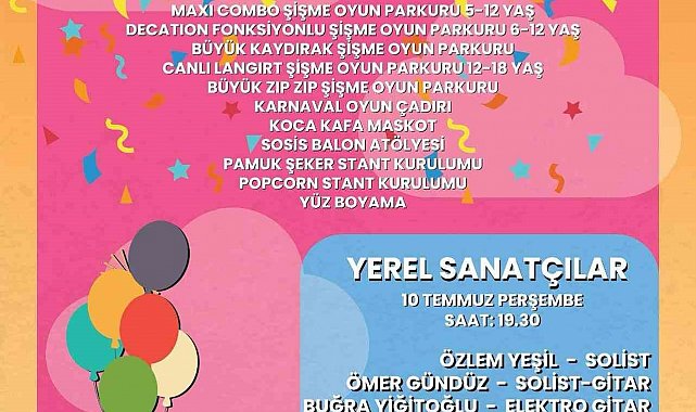 Etkinlik kapsamında şişme oyun parkurları, yüz boyama, pamuk şeker, balon atölyeleri ve birçok sürpriz aktivite çocuklara ücretsiz olarak sunulacak. Minikler gün boyunca enerjilerini doyasıya atarken, aileler de çocuklarının mutluluğuna ortak olacak. Şenlik, 10 Temmuz Perşembe akşamı saat 19.30'da gerçekleştirilecek yerel sanatçılar konseri ile renklenecek. Didimliler, müzik dolu bu akşamda şenliğin coşkusunu hep birlikte yaşayacak.
