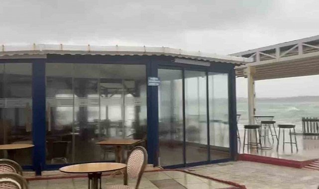 Aydın'ın Didim ilçesinde etkili olan fırtına denizin taşmasına neden oldu. Taşan deniz suları bir kafeyi basarken, işletme su altında kaldı.