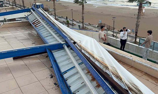 Aydın'ın Didim ilçesinde etkili olan fırtına hayatı olumsuz etkilerken, bazı iş yerlerinin çatıları zarar gördü.