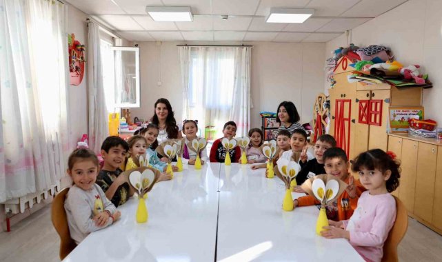 Didim'de belediye kreşinde eğitim gören minik öğrenciler, 8 Mart Dünya Emekçi Kadınlar Günü dolayısıyla öğretmenleri eşliğinde hazırladıkları renkli çalışmalarla annelerine ve tüm kadınlara mesaj verdi.