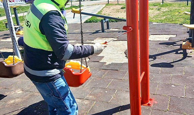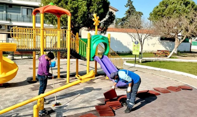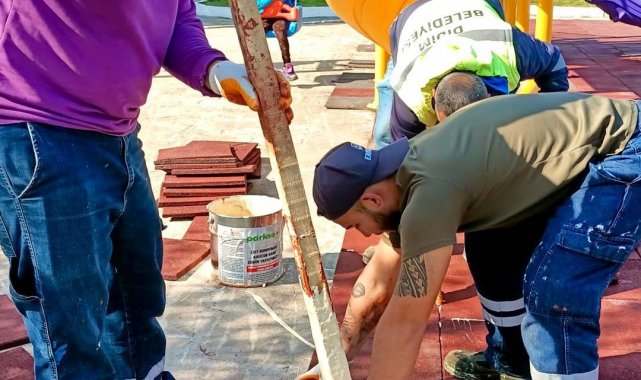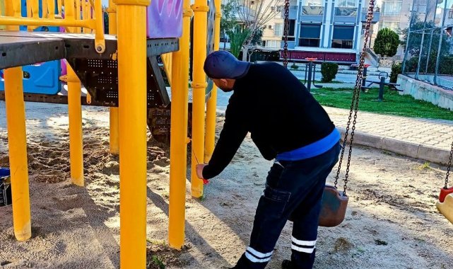 Aydın'ın Didim ilçesinde saha çalışmalarını sürdüren belediye ekipleri, çocuklar için oyun parklarında yenileme ve bakım çalışması gerçekleştirdi.