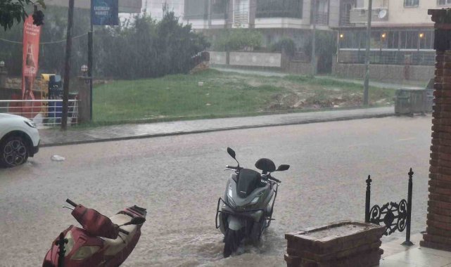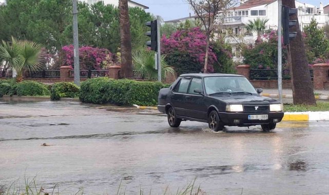 Aydın'ın Didim ilçesinde etkili olan şiddetli yağış, günlük hayatı olumsuz etkiledi. Yağmur nedeniyle cadde ve bulvarlar suyla kaplandı.