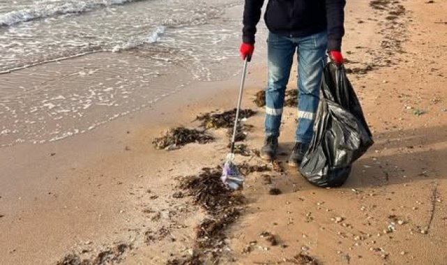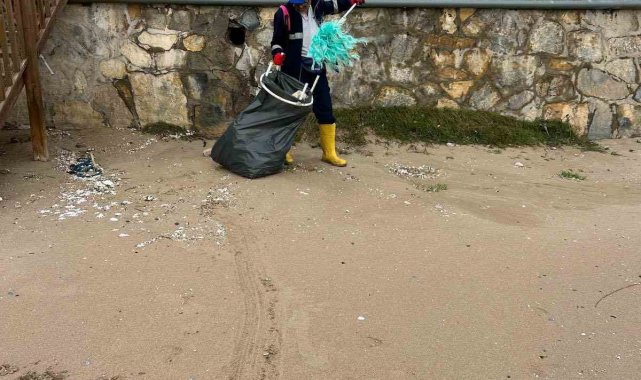 Aydın'ın Didim ilçesinde belediye ekipleri sahillerde temizlik çalışması gerçekleştirdi.